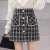2025 Koreanischer Stil High Waist Tweed A-Linien Karorock für Damen - Herbst/Winter Kurzer Schlank machender Rock