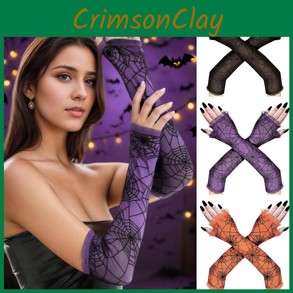 Kostüme Lange Halloween-Handschuhe Spinnennetz-Design Cosplay-Dekorationen Party