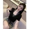 2025 Damen Slim Fit V-Ausschnitt Neckholder Faux Zweiteiler Kurzarm Sommer Top