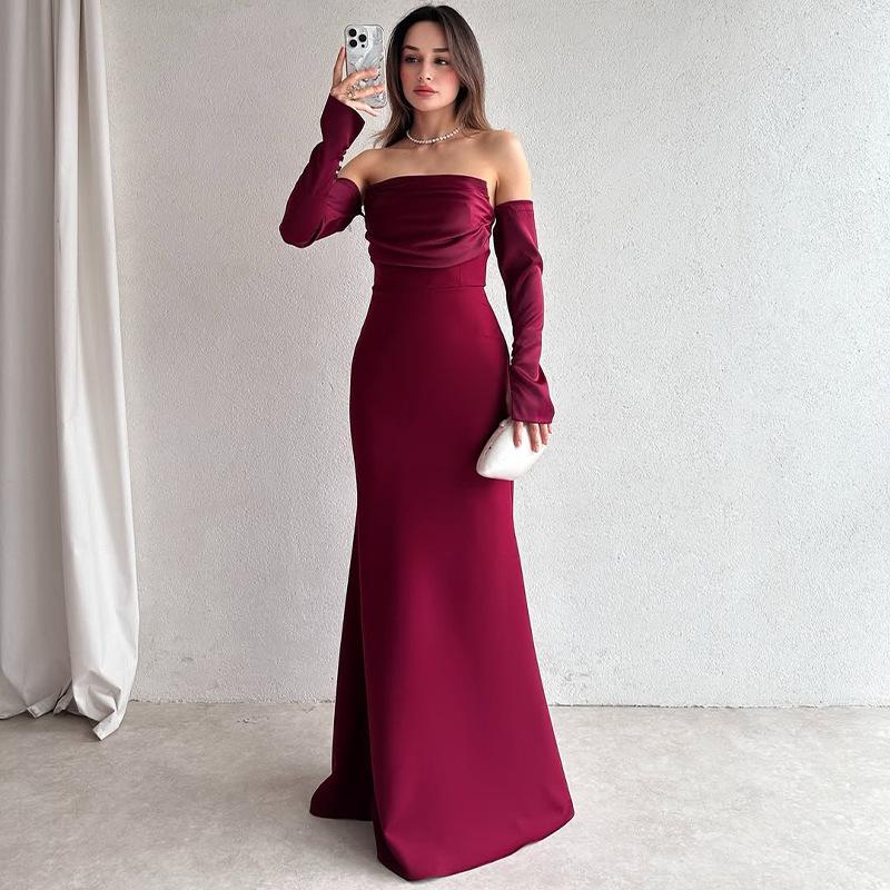 2025 Herbst Trägerloses Rückenfreies Gerafftes Kleid - Einfarbig, Langärmlig