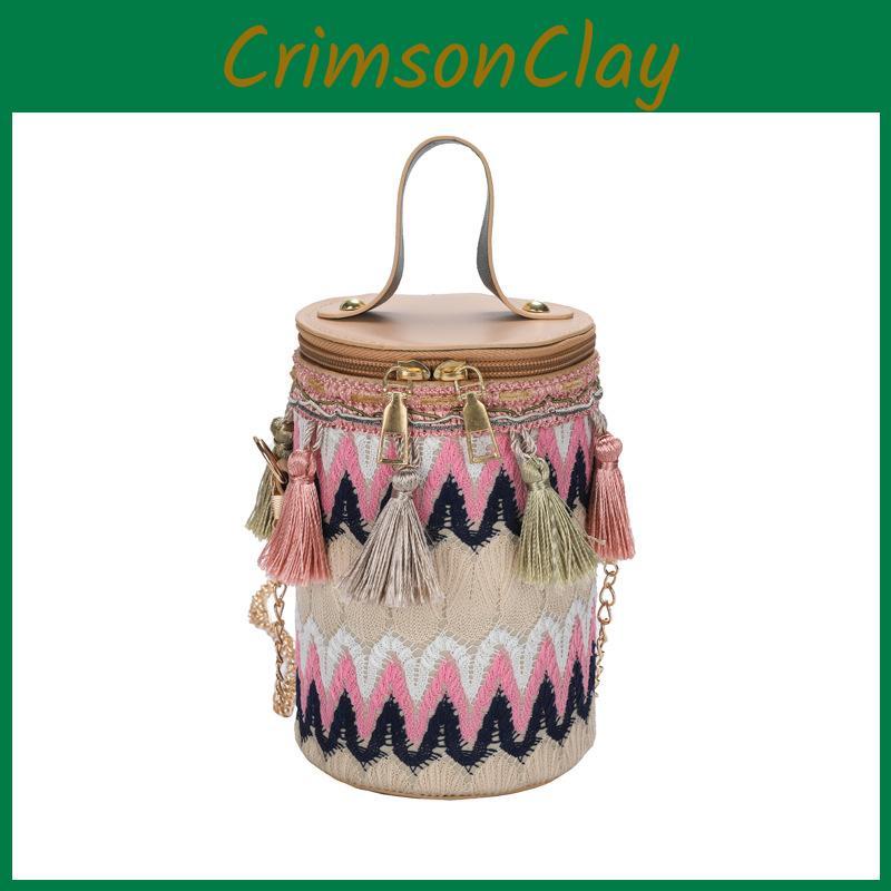 Ethnic Tassels Style Chain Strap Tote Cylinder Crossbody Bag For Women Use Daily