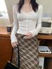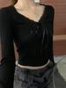 Samt-Oberteil mit Gewinde, floraler Spitze, V-Ausschnitt, langen Ärmeln und schlankmachender Passform für Damen