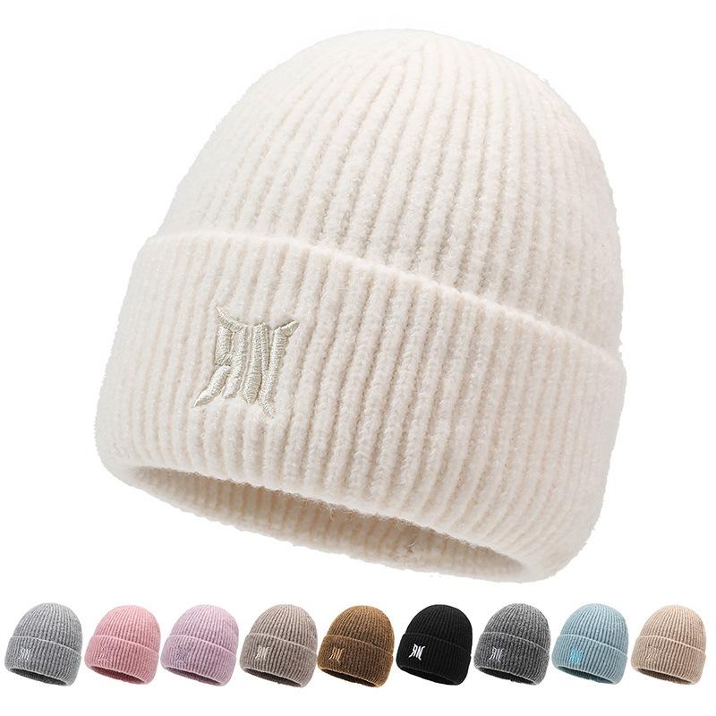 Herbst Winter Einfarbige Mütze Outdoor Wollmütze Samt Warme Gestreifte Strickmütze