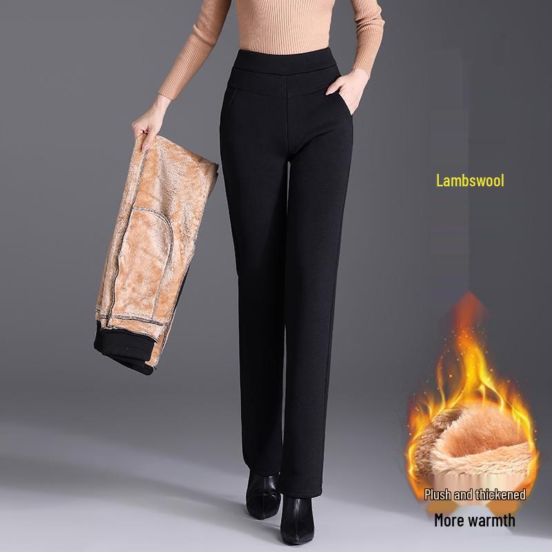 Damen Übergröße Hohe Taille Lammwolle Fleecegefüttert Dicke Hosen für Winter