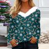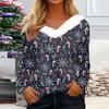 Damenmode Lässig Langarm Weihnachten Bedruckt Plüschkragen V-Ausschnitt Oberteil