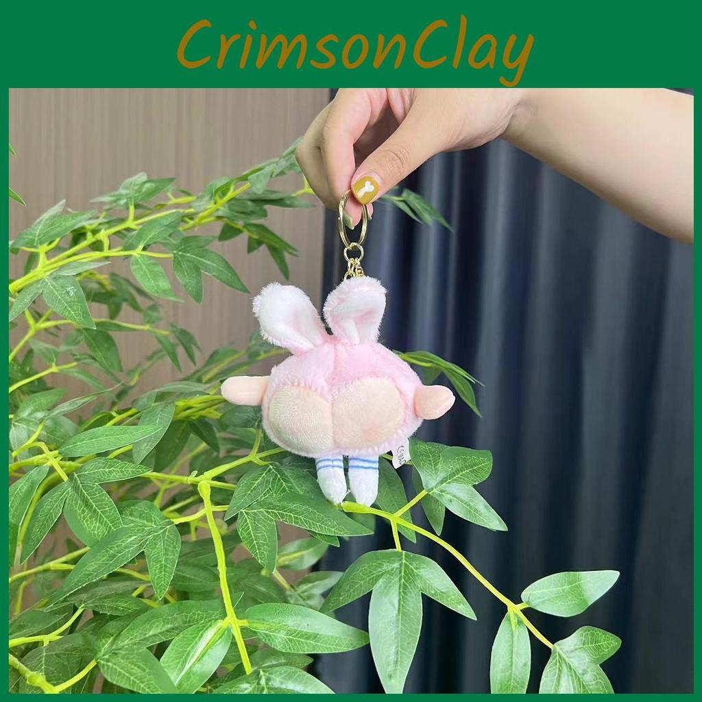 Peach Fluffy Bunny Ear Plush Keychain Cute Dog Design Fun Accessory Purses For