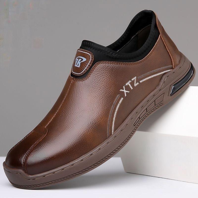 Herrenschuhe Frühling Freizeitschuhe Business Herren Lederschuhe Mittel und Alt Weiche Sohlen Ein Pedal Slipper Dad Shoes