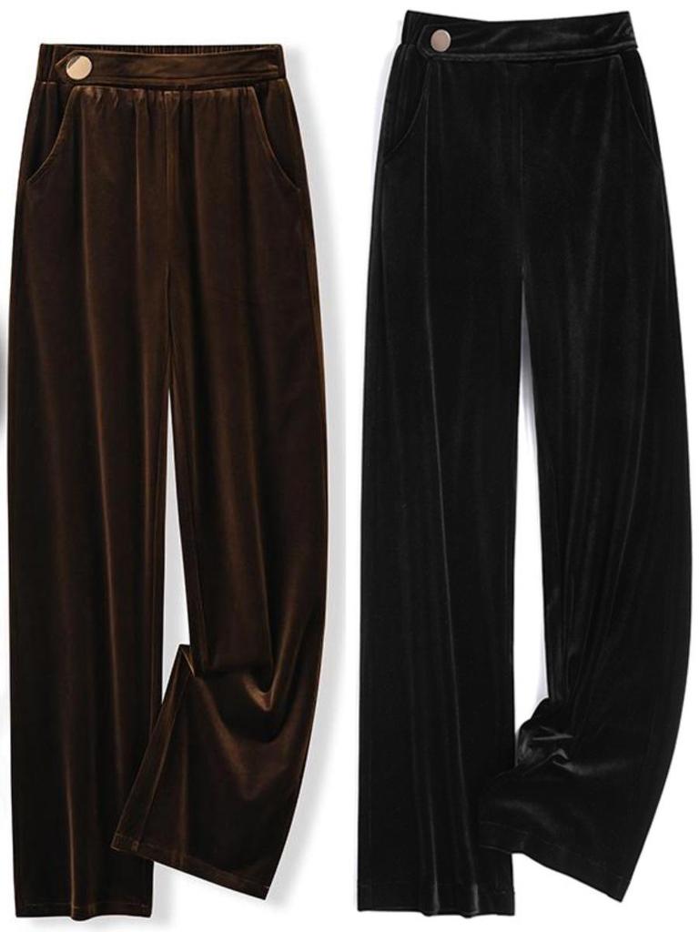 Goldener Samt High-Waist Straight-Leg Hose für Damen - Frühjahr/Herbst 2025 Kollektion