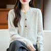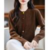 100% Wolle Damen Herbst/Winter Koreanischer Stil Punktgestrickte Strickjacke - Vielseitig, Figurbetont & Modisch Rundhals
