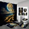 4-Piece Set Of Star River Moon Pattern Waterproof Shower Curtain With 12 Hooks,Printed Curtain, Bathroom Floor Mat