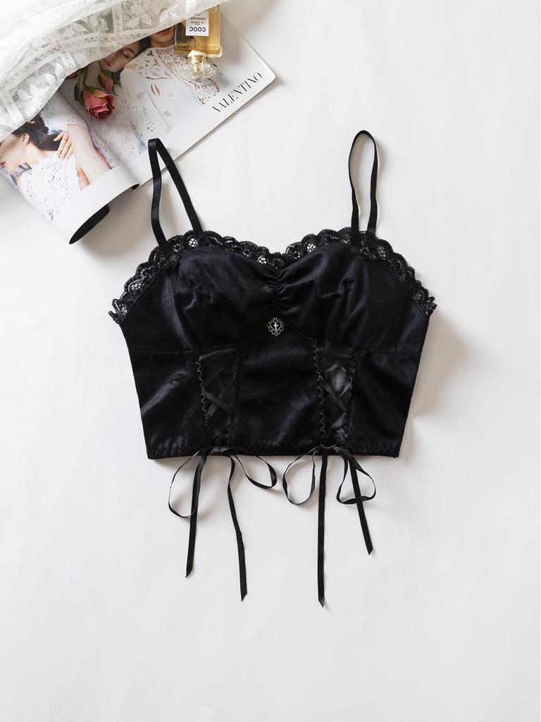 Damen Dunkel Samt Schnür-Camisole - Bügellose Erotische Dessous