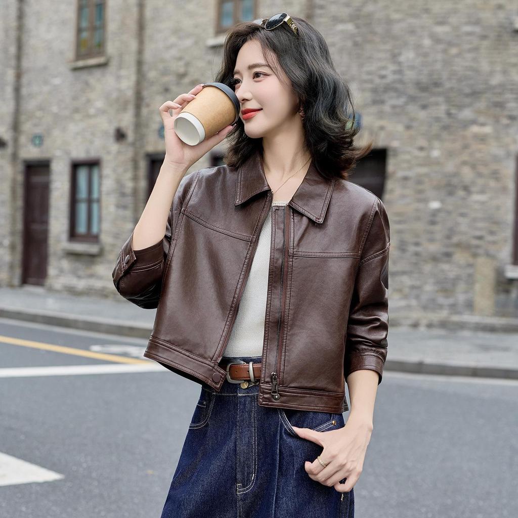 Damen Lammleder Motorradjacke - Kurz, Lockerer Schnitt, Lässiger Reverskragen für Herbst & Winter Mode