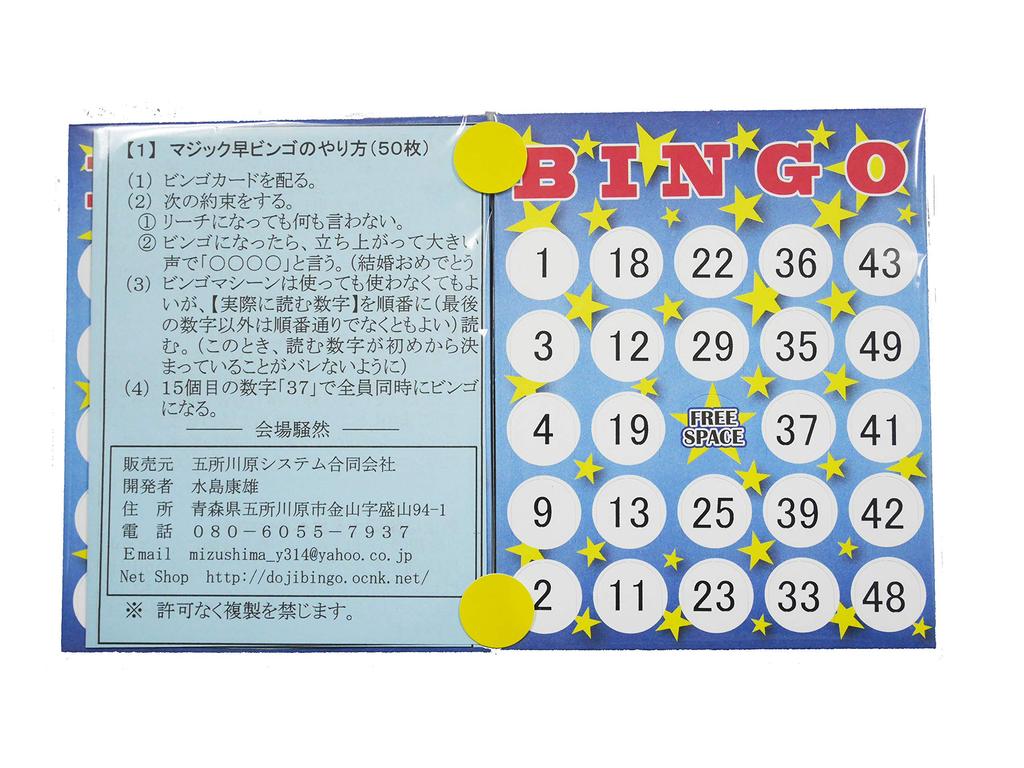 If you hold this event at a wedding or end-of-year party, for example, when you get bingo, you can have everyone stand up and say "Congratulations on your marriage" in a loud voice. Everyone will then stand up in unison and join in a chorus of "Congratulations on your marriage." The venue will be filled with cheers of surprise and joy.