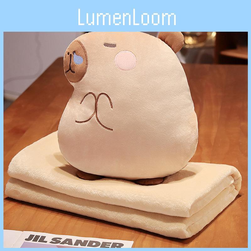 Plush Capybara Cartoon Toy Pillow Blanket Combo Convenient Multi Functional Doll