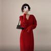 Damen High-End Strickkleid mit V-Ausschnitt und figurschmeichelndem Midilängen-Design für Herbst/Winter.