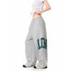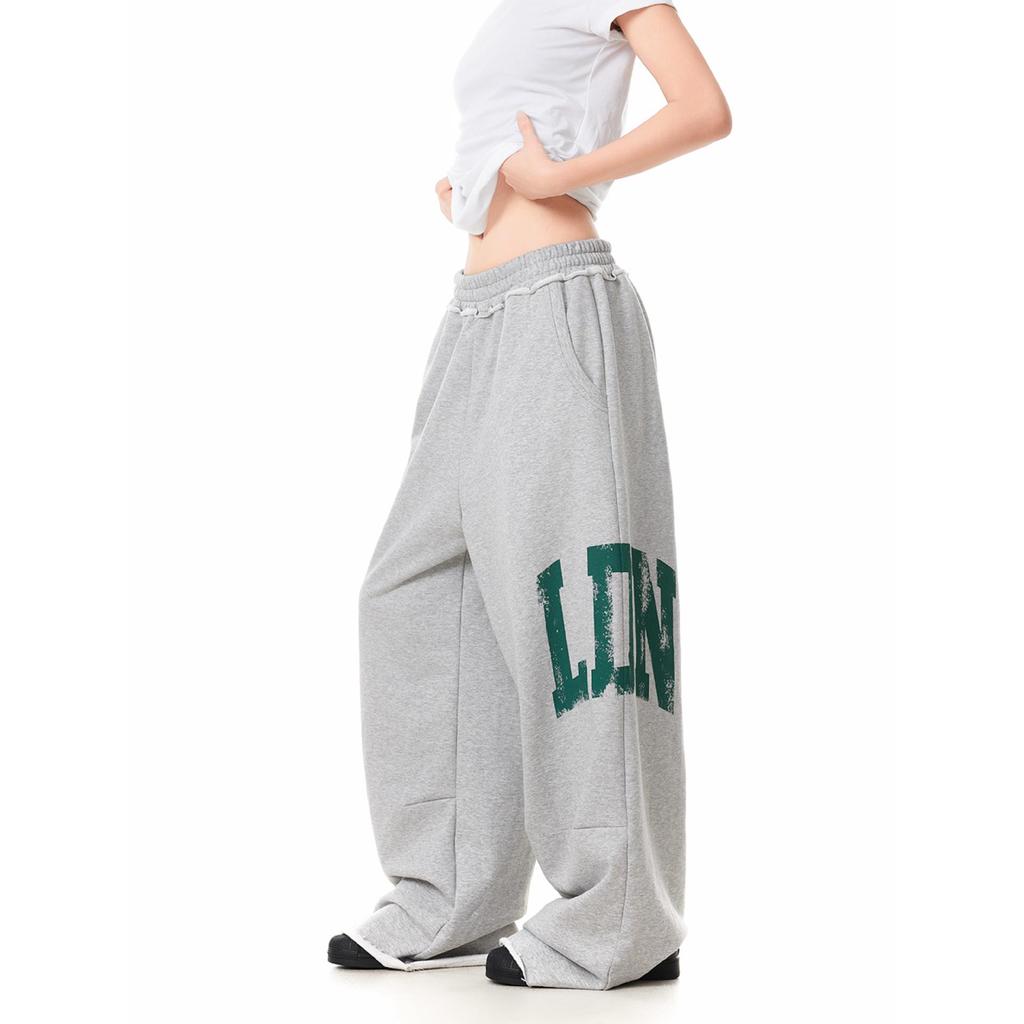 Damen Amerikanische Retro Sportliche Sweatpants mit Seitenbuchstaben-Print - Bodenlang, Lockere Passform, Elastischer Bund, Raw-Edge-Design