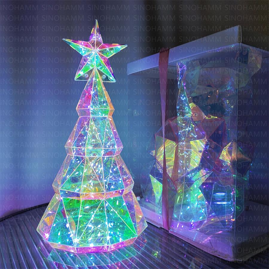 LED Christmas Tree Table Lamp Iridescent Colorful Bedroom Decorations USB LED 2025 room decor Lighting for Home xmas