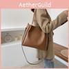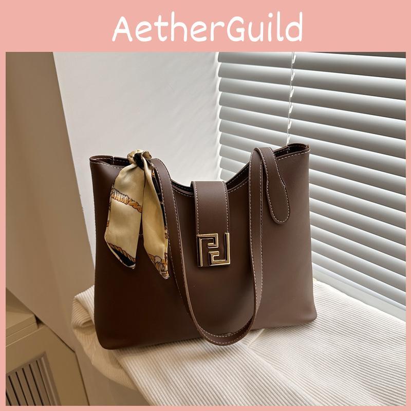 Large Capacity Simple Shoulder Bag With Solid Color Design And Scarf Decoration
