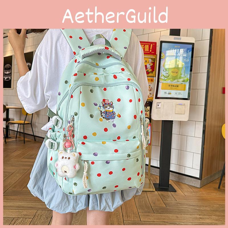 Colorful Cute Polka Dot Cartoon Cat Embroidery Pattern Backpack Students