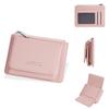 This women's wallet features a durable PU material construction with a three-fold design,It incorporates an anti-theft lock and is accented with sleek topstitching for added style. The interior is lined with polyester, providing smooth access and storage.Ideal for daily use, this versatile wallet supports secure cash and card organization, making it suitable for everyday outings and commuting. It is available in multiple colors including black, green, orange, pink, blue, gold, white, and brown. Wipe clean with a damp cloth to maintain its appearance.