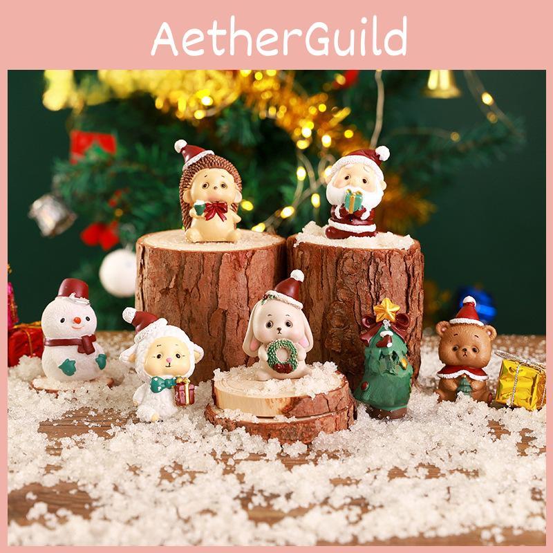 Weihnachtsfiguren-Set aus Kunstharz mit Tiermotiven, Weihnachtsmann, Baumdekoration, Kindergeschenk zum Geburtstag