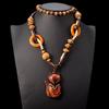 JMXD Boho Vintage Ethnisches Langes Halskettenholz Fuchs Anhänger Pullover Kette Unisex Geschenk Handgefertigt Trendiger Europäischer Statement Schmuck