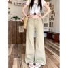 Koreanische Khaki Weitbeinjeans Damen Straight Leg Loose Jeans