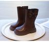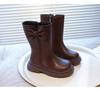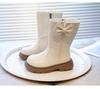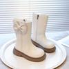 Mädchen Kniehohe Stiefel im britischen Stil mit Fleecefutter und Schleife - Herbst/Winter 2025 Mode für kleine Prinzessinnen mit weichen Sohlen