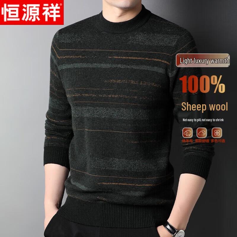 Hengyuanxiang Men's 100% Pure Wool Crew Neck Sweater