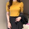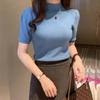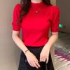 2025 Frühling/Sommer Damen Stricktop mit Puffärmeln, halbem Stehkragen und figurbetonter Passform, schickes Halbarm-Basisshirt
