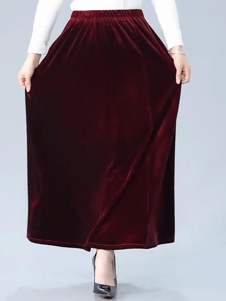 Women's Plus Size Skirt Solid Color High-Waist Gold Velvet Skirt Spring Autumn Long A-Line Skirt