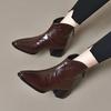 Damen Retro Braune Schlankmachende Leder-Stiefeletten - Weich, Samtgefüttert, Quadratische Zehenpartie, Perfekt für Herbst- und Wintermode