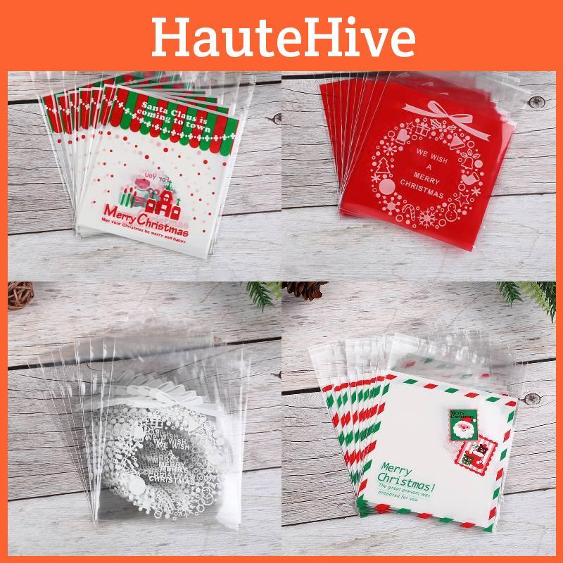 This transparent, self-sealing Christmas gift bag measures 7*7cm and is made from durable, biodegradable plastic. Designed for wrapping hard candies, cookies, and chocolates, it features a simple style with vibrant color options like red, green, white, and gold, and an inner layer for added protection.