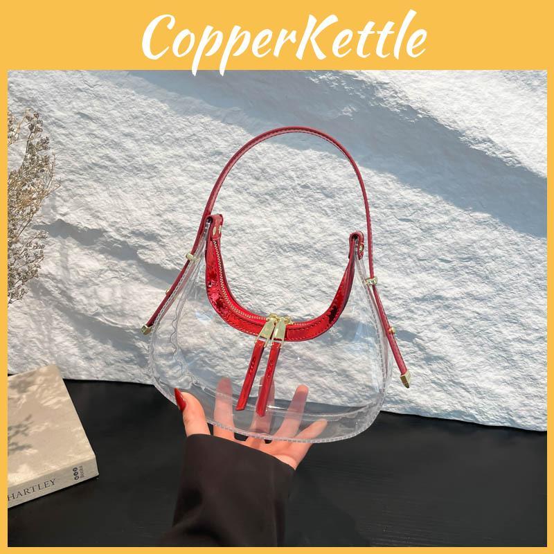Transparent Handbag Women Summer Fashion Crescent Bag Zipper Closure Bags Travel