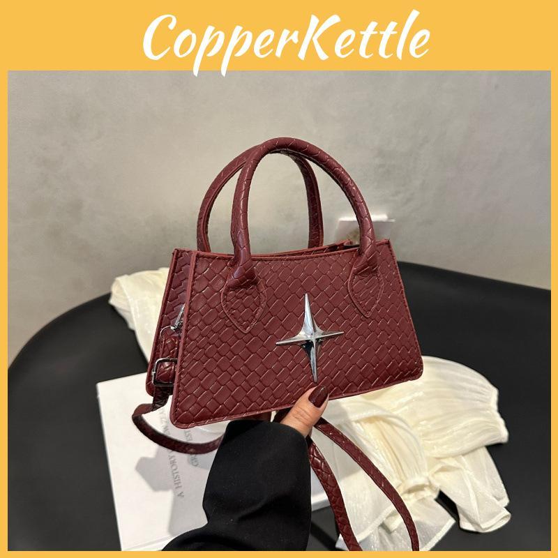 Retro Crossbody Shoulder Bag With Star Decoration And Woven Pattern For Daily