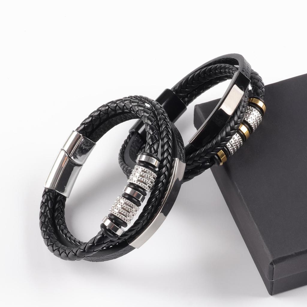 Geflochtenes Lederarmband für Herren - Echtes Leder, Edelstahl, Magnetverschluss, Stilvolles Accessoire
