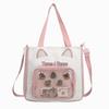 Niedliche Kitten Ita Bag mit großer Kapazität - Transparente Umhängetasche mit Cartoon-Print für Studenten