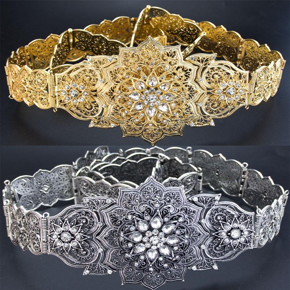 Sunspicems Eleganter Kristall-Damengürtel, Metall-Taillenkette, goldfarben, verstellbare Länge, arabischer marokkanischer Brautschmuck