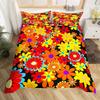 Vintage Groovy Blume Bettbezug Niedliches Regenbogen Schmetterling Bettwäsche Set Retro Floral Boho Rosa Bettdeckenbezug mit 2 Kissenbezügen