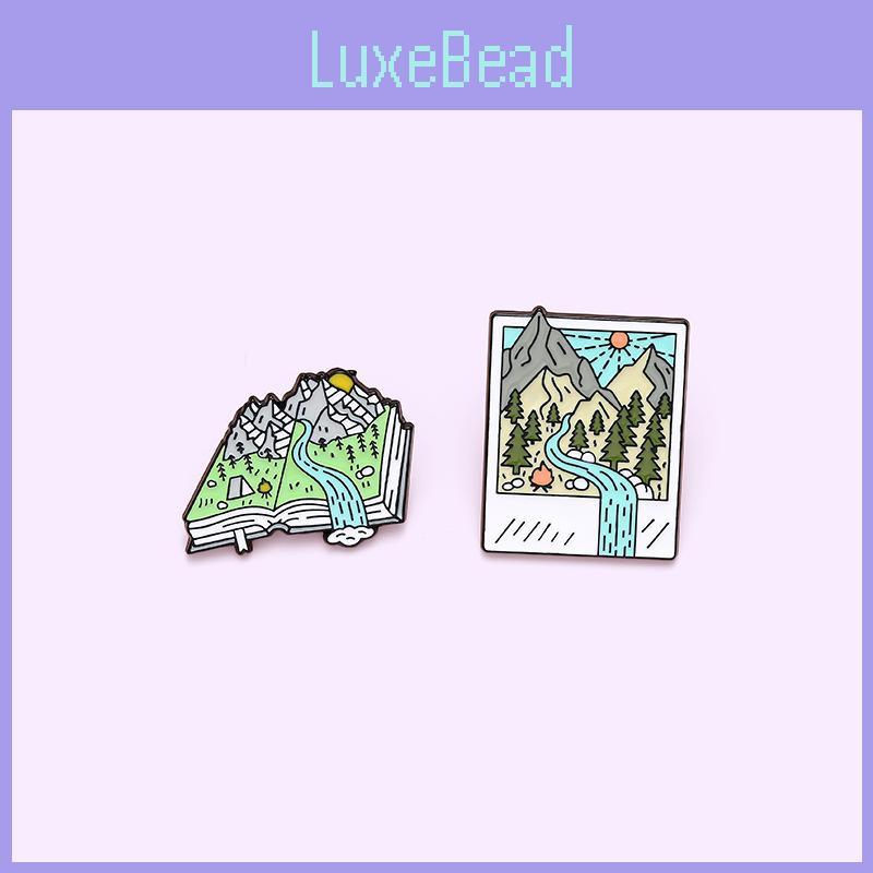 Geometric Design Cartoon Landscape Brooch Colorful Book Pin For Trendy Accessories Personal