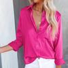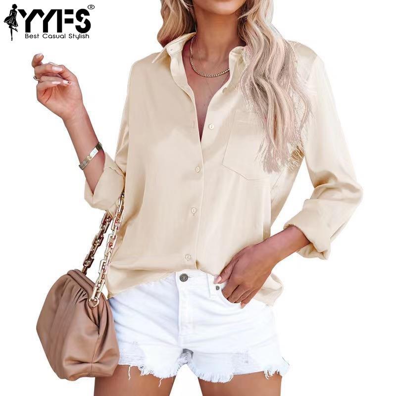 YYFS Damenmode, lässig, Frühling und Herbst, einfarbig, langärmelig, Polo-Ausschnitt, Blusen und Hemden