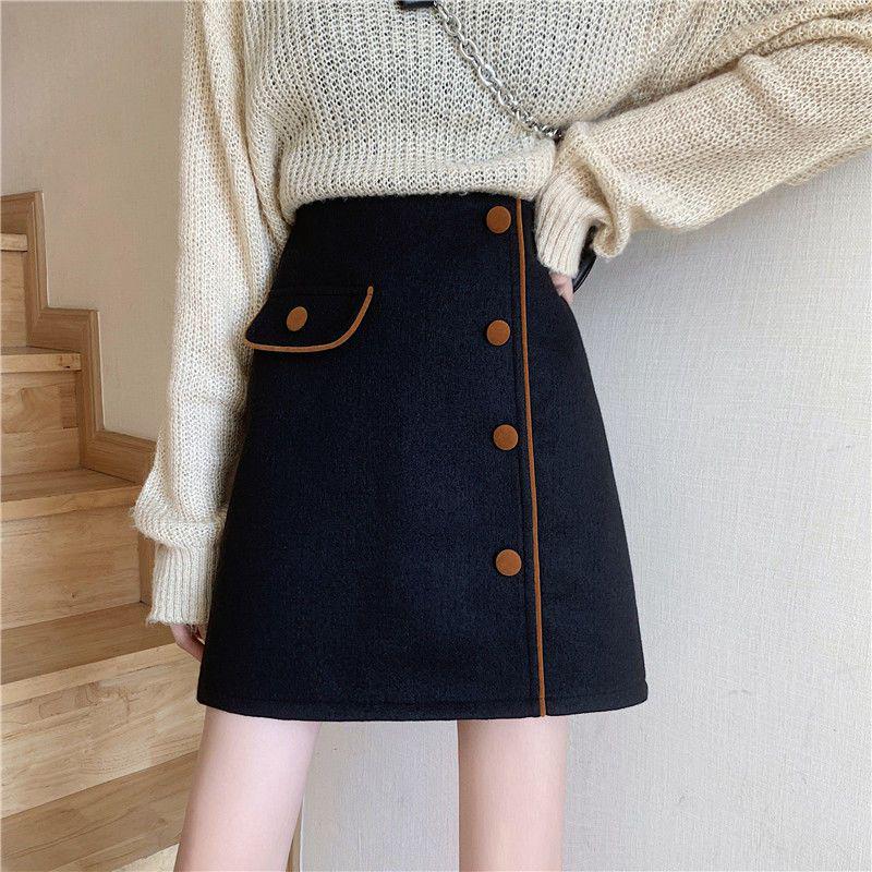 2025 Wollrock mit hoher Taille in A-Linie, unregelmäßiger Schnitt - Damen Übergröße, einreihig, schlankmachender kurzer Rock für Herbst/Winter
