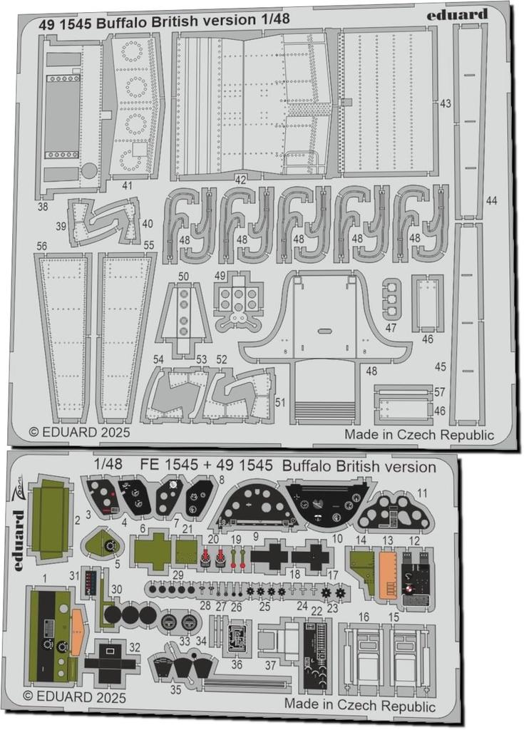 Eduard 1/48 Scale Brewster Buffalo British Type Etched Parts (for Tamiya) Plastic Model Kit Parts EDU491545 (Airplane)