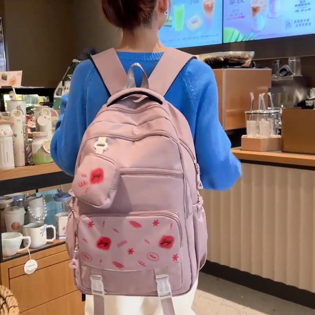 Schulranzen für Studenten mit großer Kapazität, bedruckter Damen-Campus-Rucksack