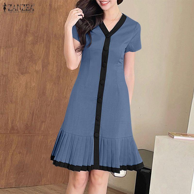 ZANZEA Damen Freizeit V-Ausschnitt Sommer Kurzarmkleid