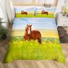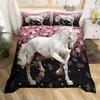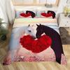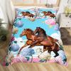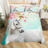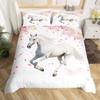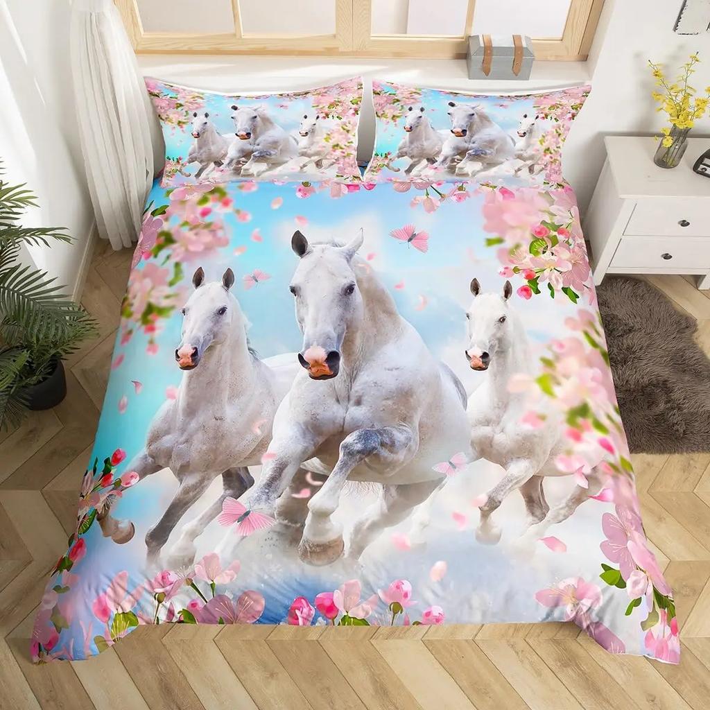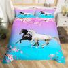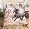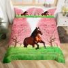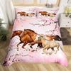 Pferde-Bettwäsche-Set für Mädchen Rustikales Bauernhofpferd Bettbezug Queen Rosa Kirschblüten-Deckenbezug Farbverlauf-Tagesdecke