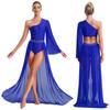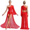 Damen Lyrisches Tanzkleid Ein Schulter Ärmel aus transparentem Mesh Ausgestellter Ärmel Strass-verziert Fließender Rock mit Schlitz