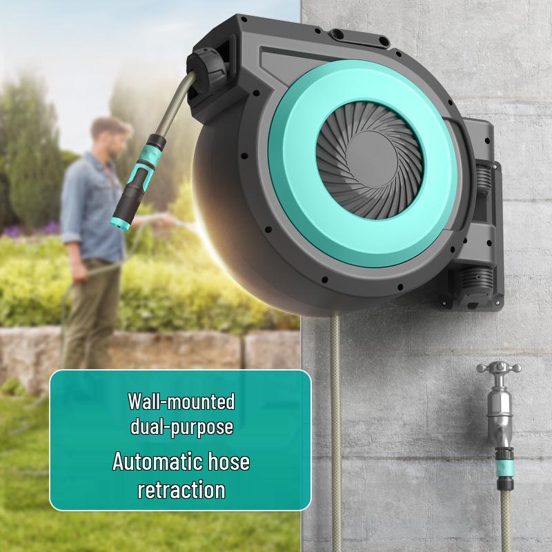 Automatischer Wandmontierter Einziehbarer Gartenschlauchaufroller mit Hochdruck-Wasserpistole zum Gießen, Autowaschen und Reinigen des Bodens
