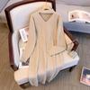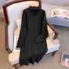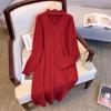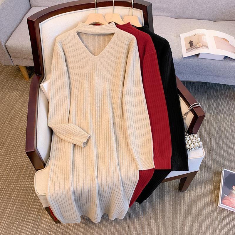 Übergröße Gestricktes V-Ausschnitt Langkleid - Koreanische Mode, Herbst/Winter, Lockere Passform, 3XL