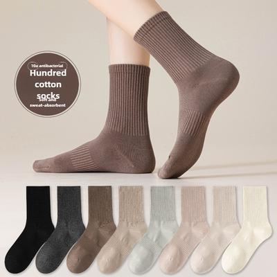 Damen Baumwollsocken in Wadenlänge - Schweißabsorbierend, geruchshemmend, einfarbig für Frühling und Herbst